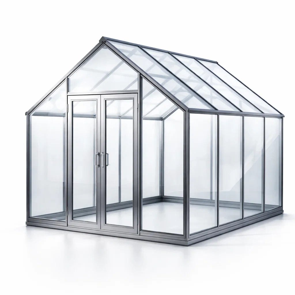 La serra è realizzata con una struttura in alluminio e vetri in vetro temperato. Le dimensioni sono 300 cm di lunghezza, 200 cm di larghezza e 250 cm di altezza, con un peso complessivo di 150 kg.